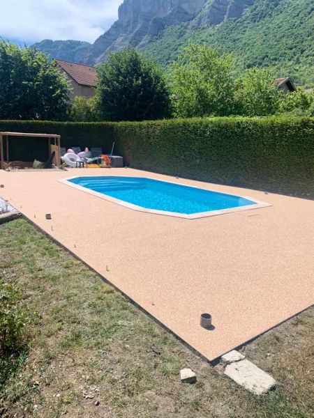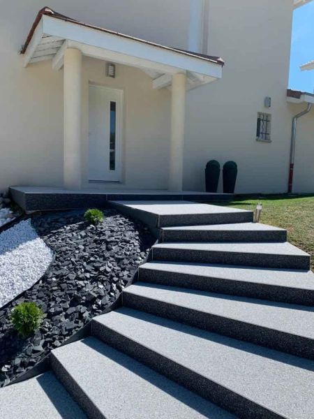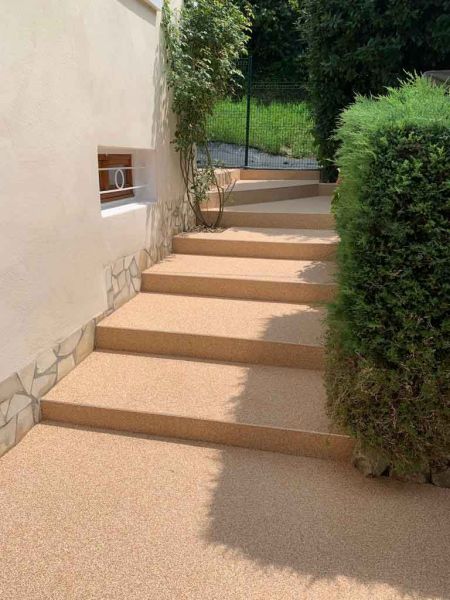 Le revêtements tapis de pierre est un système chargé à base de résine polyuréthane, de gravillon d’une petit granulométrie de divers matière rocheuse. Généralement le granite et le produit phare avec un rendus brillant et lisse qui est agréable au contacte du pied nus.